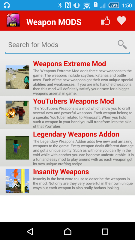 Weapon Mod For MCPE is incredible mod to enhance your mcpe world! This mod consist of great of materials in the game. What are you sitting strict for?, Download and install Now!
