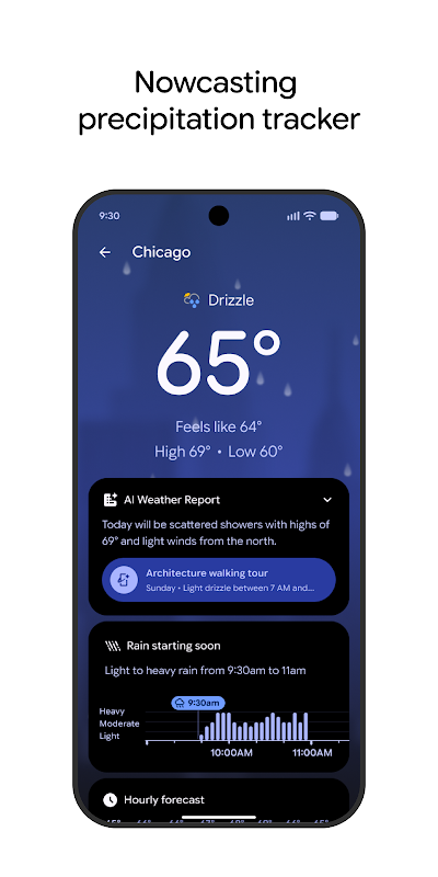 Dapatkan ramalan yang terkini dengan apl cuaca eksklusif Pixel. Anda juga boleh: