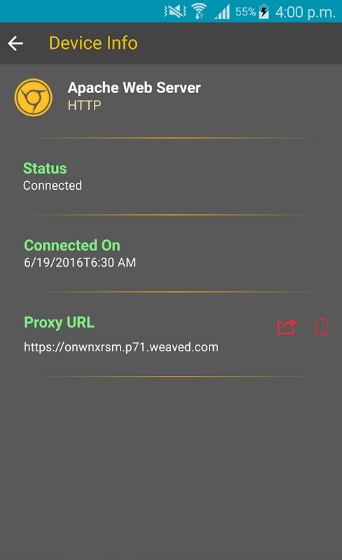 Weaved services for Raspberry Pi App helps to connect to your weaved account and create remote proxy urls that can be used to access Raspberry Pi remotely