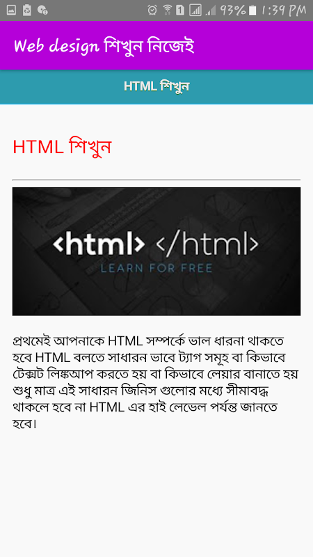 Web design শিখুন নিজেই-বাংলা ওয়েব ডিজাইন শিক্ষা অ্যাপে আপনাকে অভিনন্দন ।