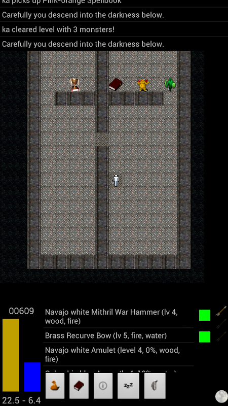 - Weapons to wield, bows to shoot, armor to wear, magical amulets to speed you up and slow down monsters, spellbooks to read, treasures to collect.