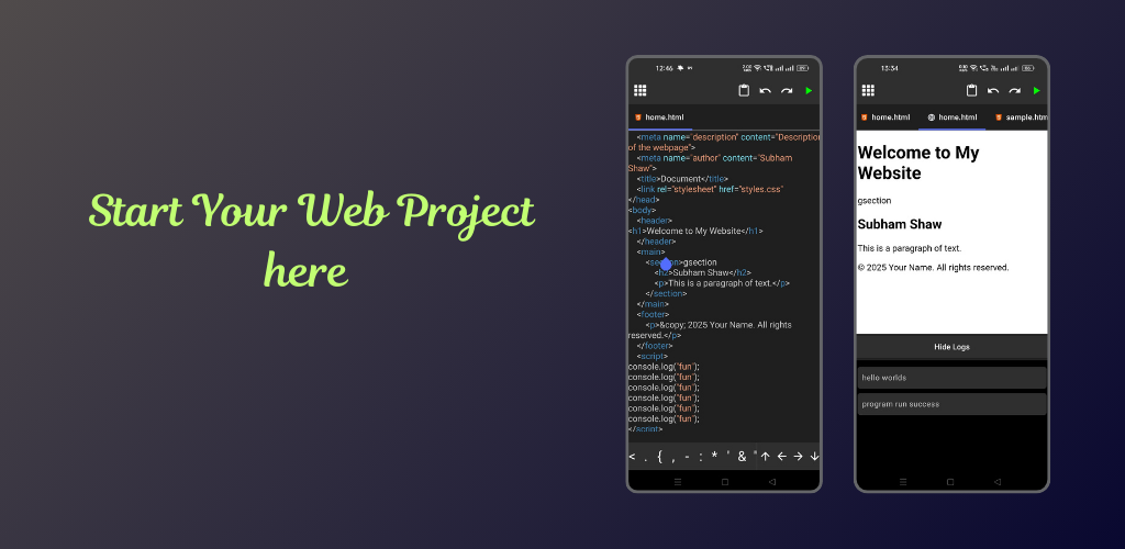 ✔ Pembangun web membina projek HTML/CSS/JS pada mudah alih