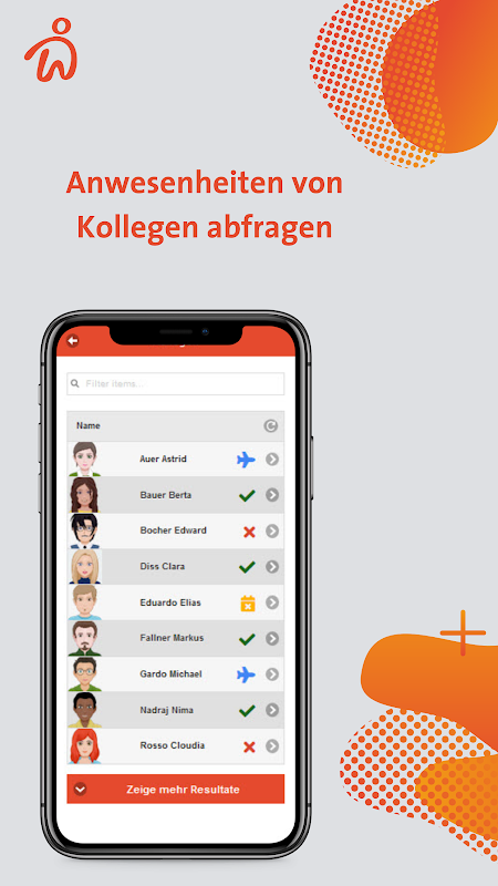 - Akses ke status rakan sekerja semasa (hadir, tidak hadir, ...)
