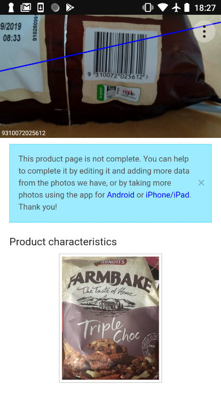 Ini memiliki pemindai barcode cepat bawaannya sendiri di bagian atas layar dan menunjukkan hasilnya di bawahnya. Kode batang yang dipindai akan ditempatkan di tempat Anda meletakkan *** di string URL.