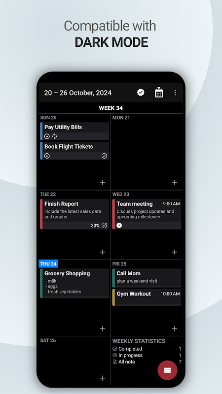 ✔ Antara Muka Kalendar Intuitif – Antara muka pengguna berasaskan Kalendar yang mempersembahkan nota dan tugas mingguan anda dalam format yang mudah diakses