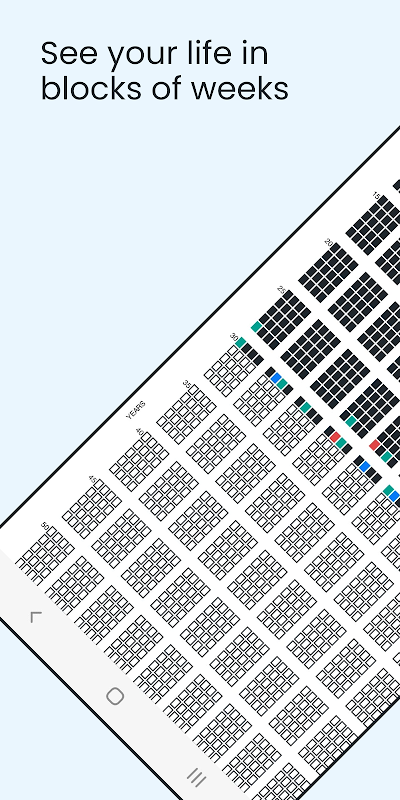 Weeks Gone mengambil beberapa maklumat asas dan mengira anggaran jangka hayat anda, dalam beberapa minggu, berdasarkan data WHO terkini. Minggu dipaparkan sebagai blok dalam kalendar diperibadikan yang boleh diterokai dan dinilai supaya anda boleh melihat seluruh hidup anda dengan mudah.