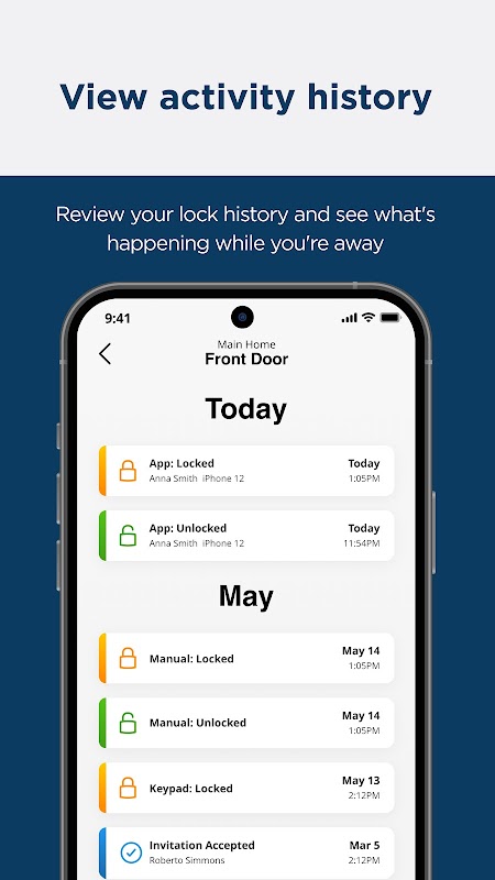 Pantau status kunci anda dan uruskan akses rumah anda dengan lancar dari mana-mana sahaja pada bila-bila masa.