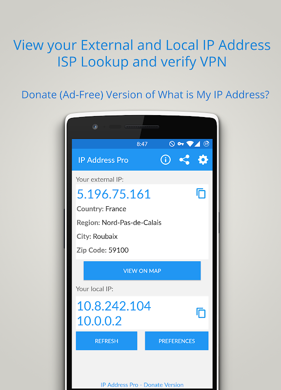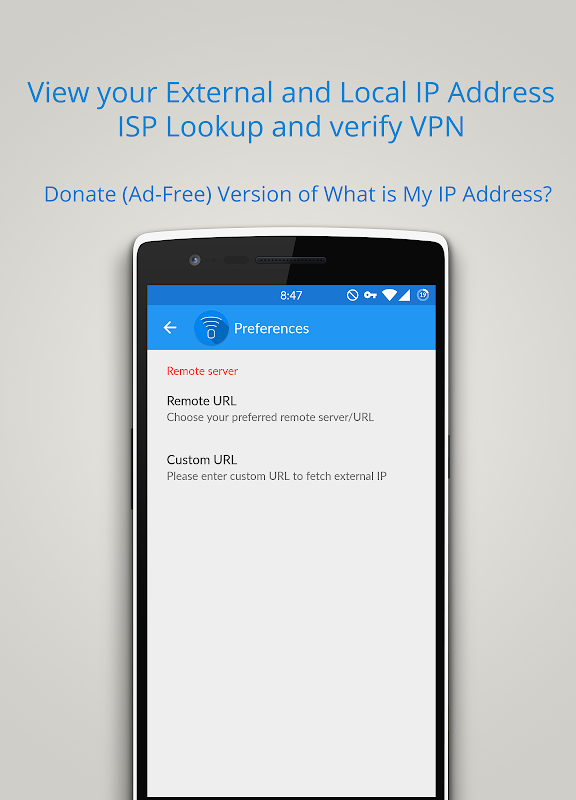 Find out your external and internal Internet Protocol Address with ease, simply by opening the app. This app also displays the IP lookup for your Internet Protocol address. Check the location on maps with this app. You can also add your own remote server URL to check the IP address or switch between the options. Test your VPN or proxy server on android by using this app.