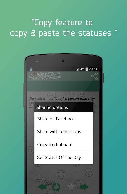Whats best status is app for a cool collection of quotes posts and statues for all occasions, can use for status whatsapp or status Facebook and other Social Sites.