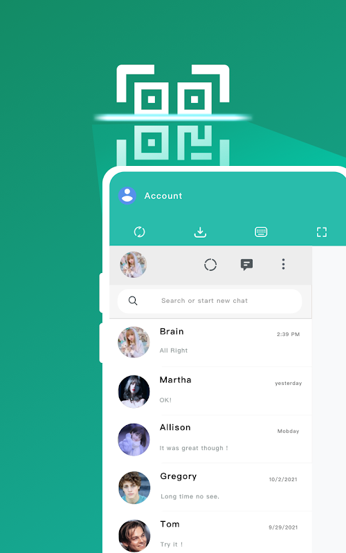 Pengimbas untuk Web - Dual ialah Web Clone Messenger untuk anda mengklon akaun pada peranti lain. Ia juga boleh memuat turun status, termasuk video dan imej. Apl Web membantu mengurus semua fail anda dengan cekap.