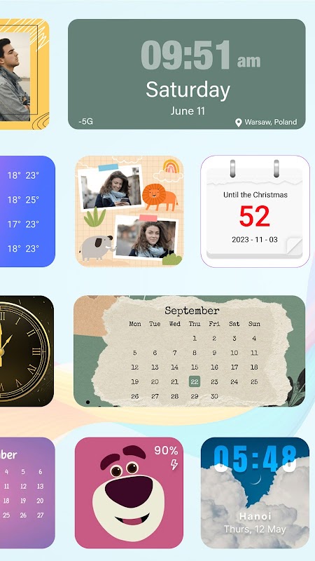 Alat Widget yang direka dengan cantik dan mudah digunakan yang menyediakan pelbagai skema warna tema. Ia menawarkan pelbagai pilihan widget berfungsi, seperti widget pemain muzik, widget jam analog, widget jam selak, widget kalendar, widget maklumat peranti dan widget foto. Anda boleh menambahkannya dengan mudah pada skrin utama anda untuk menghiasi telefon anda dan meningkatkan kecekapan.