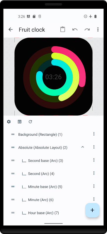 Objek widget – Elemen Tarikh dan Masa dengan sokongan zon waktu, teks, bentuk, imej, ikon cuaca dll