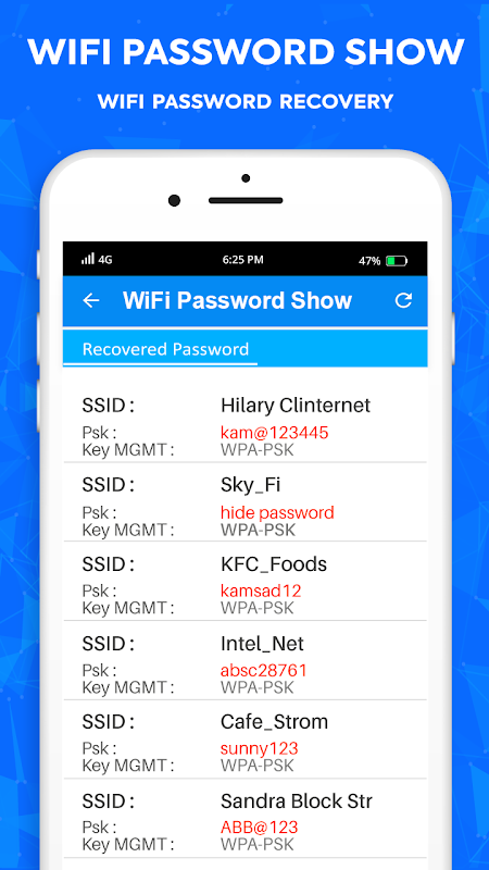 * Aplikasi pemulihan kunci kata laluan wifi untuk memulihkan semua kata laluan wifi yang hilang.