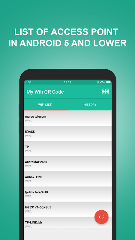jika anda mempunyai peranti dengan android 5 dan lebih rendah, aplikasi itu menunjukkan senarai titik akses di kawasan anda: