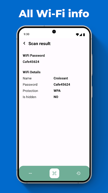 Bahkan jika perangkat Anda memiliki pemindai QR, Tampilkan Kata Sandi WiFi menawarkan fitur unik! Gunakan aplikasi untuk terhubung ke WiFi dan menampilkan kata sandi WiFi. Bagikan, simpan, atau kelola koneksi dengan mudah.