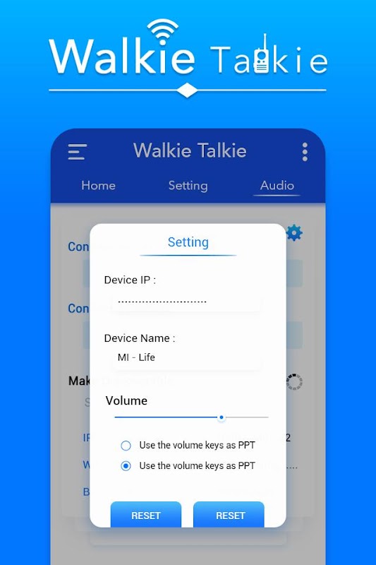 Simple Walkie Talkie brings back the experience of a classic walkie-talkie. Use it as you would on a portable device for ordinary Walkie Talkie. It also includes baby monitor mode.