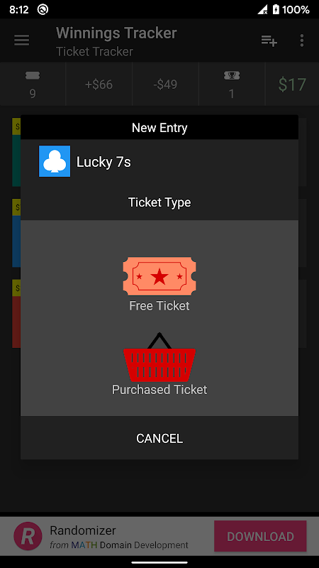 Penjejak Kemenangan membantu anda menjejaki kemenangan dan kerugian anda untuk tiket gores, kad gores dan banyak lagi.