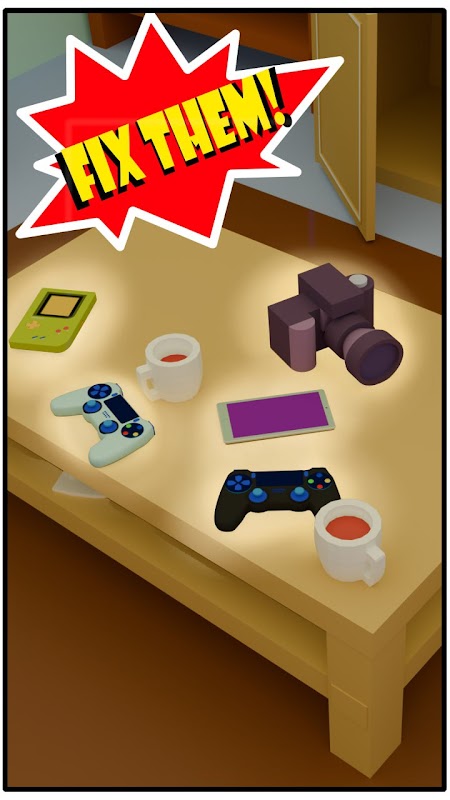 Betulkan pembakar roti, TV, pengisar dan banyak lagi semasa anda bergerak melalui setiap bilik. Selesaikan semua elektronik dalam satu bilik untuk membuka kunci bilik seterusnya!