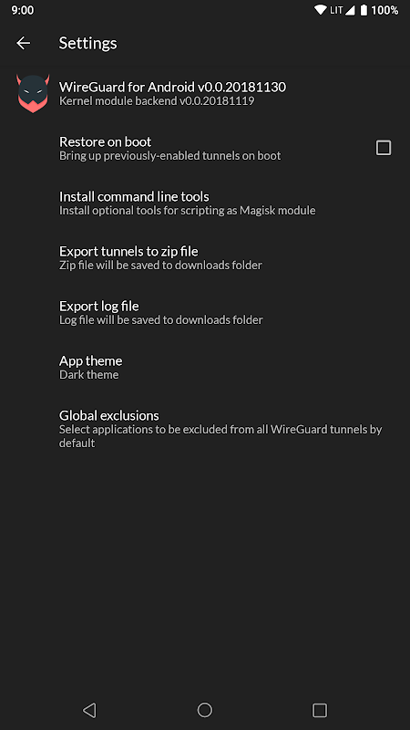 WireGuard-KT is a refreshed take at the official Android client with a nicer UI, additional features and is built with the best of Android Jetpack, Google's brand new suite of tools to make Android development more pleasant.