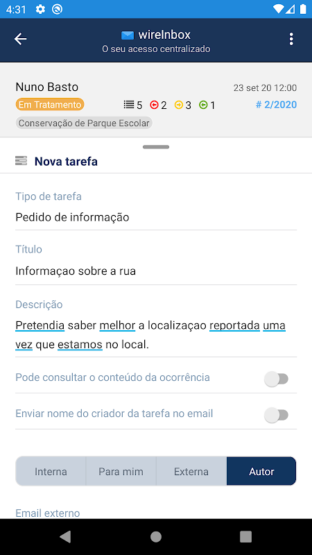 Di wireINBOX anda boleh mengurus acara yang dilaporkan oleh warga negara, mengkategorikan acara tersebut, membuat tugas dan meneruskan, menerima pemberitahuan.