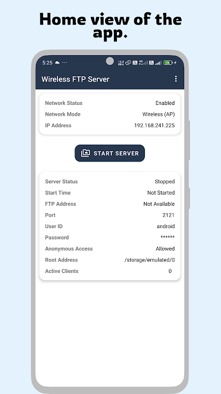 2. Lancarkan aplikasi Pelayan FTP Tanpa Wayar dan mulakan pelayan.
