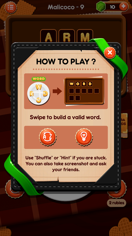 * Challenging levels in the word puzzle game
