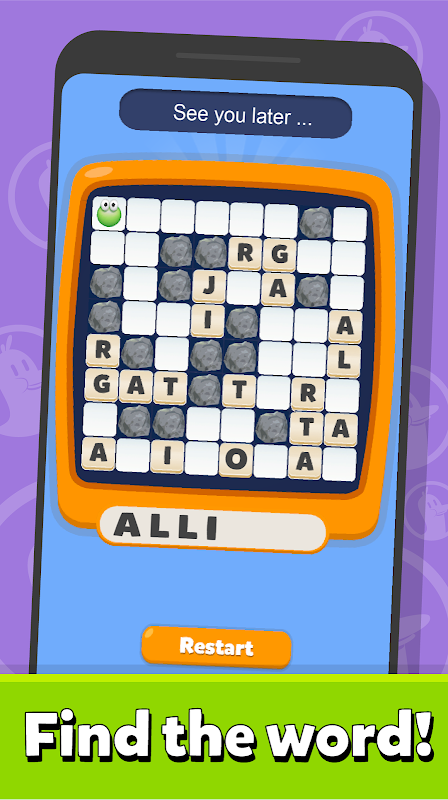 Lengkapkan frasa dengan mencari perkataan tersembunyi di petak. Lekas dengan titik di sekitar petak untuk membentuk perkataan. Bersenang-senang dengan beratus-ratus peringkat termasuk ucapan, petikan filem, petikan tv, frasa sejarah dan banyak lagi!