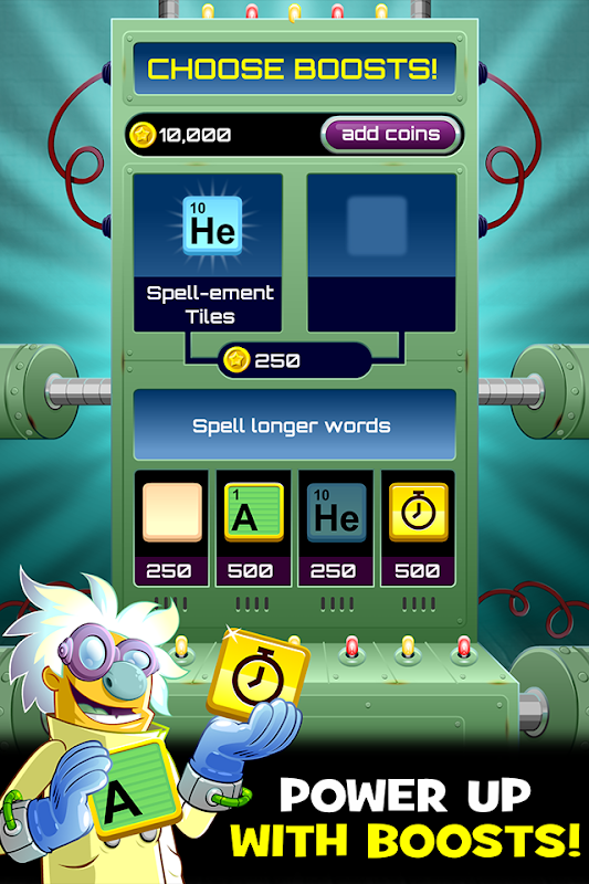 In this fast-paced spelling game, your words power Dr. Von Vocab’s crazy lab! Grab letters as they whiz by on conveyor belts and form words as fast as you can to keep Dr. Von Vocab’s experiments going. Are you ready for Word Science, a new word game that only science could create?