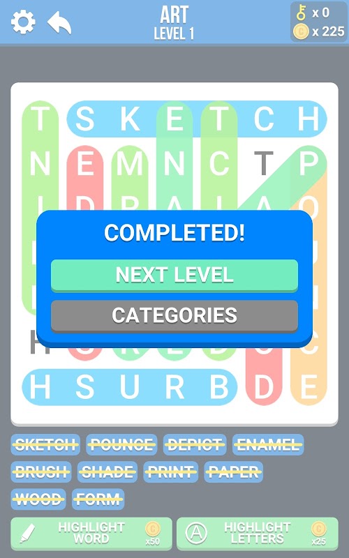 Permainan Carian Kata Ketagihan untuk semua peringkat umur untuk meningkatkan kemahiran ejaan untuk melatih otak anda tidak pernah menjadi lebih mudah dan santai.