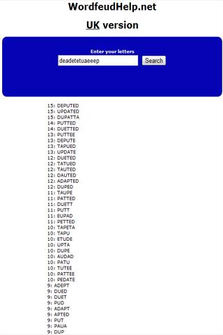 Find and check all possible English words for Wordfeud with this smart search engine. With Wordfeud Help we provide the most up-to-date English Wordfeud words.