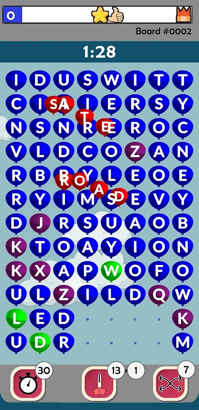 Words Up is a fun and challenging match-3 game where you find 4 (or more ) letter words in a letter grid. Each game board will have the same starting grid giving you the chance to find the best opening moves to propel yourself up the world rankings!