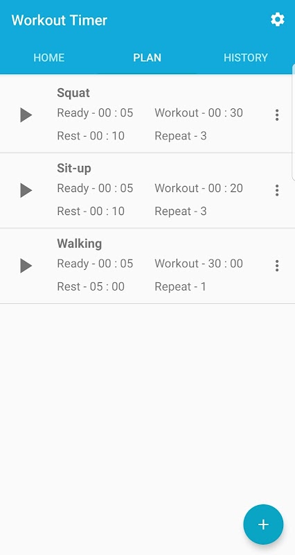 You can start the timer by setting the preparation time, exercise time, rest time, and number of repetitions. You can set the sound and vibration in the settings screen, and you can select various notification sounds.