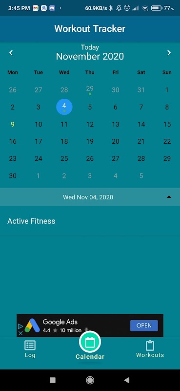 Keep track of your workouts and when you last worked out.