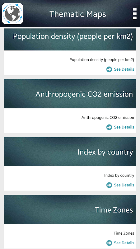Dalam bahagian kedua daripada World Map, anda boleh memeriksa peta tematik moden: