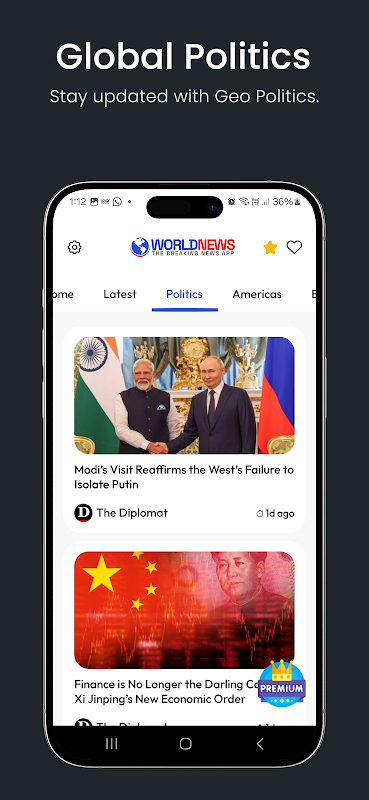 Sama ada anda mahukan akhbar dunia, maklumat tempatan, pelaporan neutral atau perspektif antarabangsa, World News menyediakan semuanya dalam satu antara muka yang bersih.