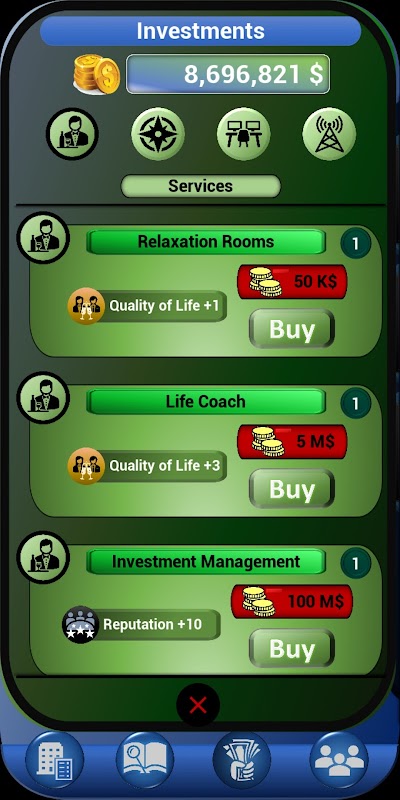 Mulakan dengan hanya $5,000 tunai, bertujuan untuk membina empayar korporat Seluruh Dunia yang akhirnya menakluki angkasa lepas!
