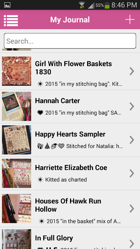 Jahitan aplikasi jurnal / inventori Cross dibina oleh stitchers salib untuk stitchers silang.