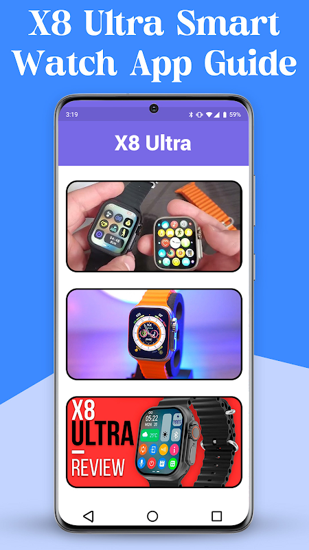 Aplikasi ini mengandungi langkah-langkah dalam menyediakan Jam Tangan Pintar Ultra X8. dan juga cara menyambung ke telefon pintar anda.