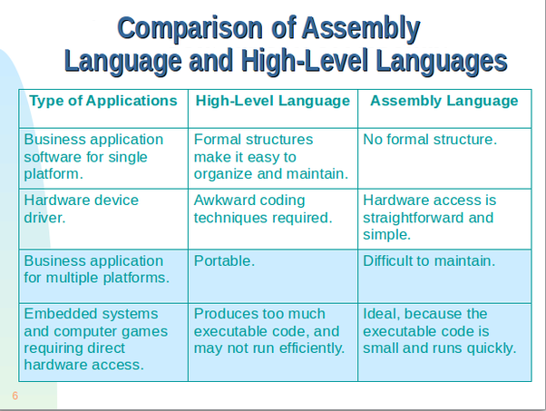 An assembly (or assembler) language, often abbreviated asm, is any low-level programming language, in which there is a very strong (but often not one-to-one) correspondence between the assembly program statements and the architecture's machine code instructions.
