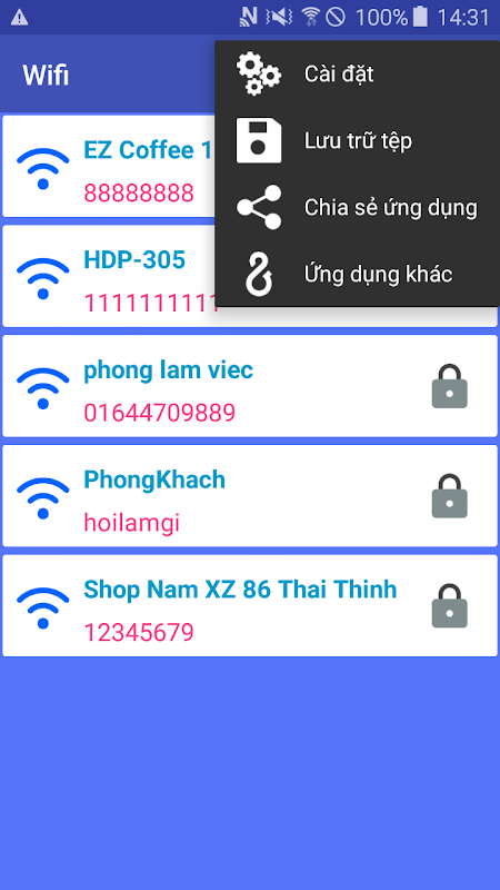 - Lưu mật khẩu wifi ra file để có thể xem lại.
