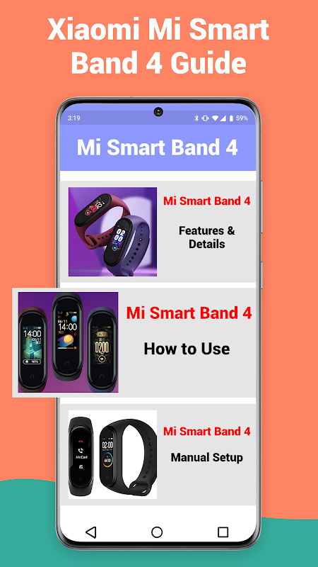 Aplikasi mudah alih ini adalah panduan. Ia bukan apl rasmi atau sebahagian daripada produk apl rasmi. Muat turun panduan ini untuk mengetahui tentang Xiaomi Mi Smart Band 4. Aplikasi ini adalah panduan yang perlu ada untuk sesiapa sahaja yang mempunyai Xiaomi Mi Smart Band 4. Ia bukan milik jenama rasmi