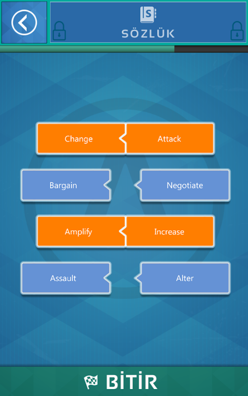 Bir ekrandaki eşlenmek üzere sunulan İngilizce kelimelerin sayısı bölüm içindeki kelimeler öğrenildikçe artırılmaktadır.
