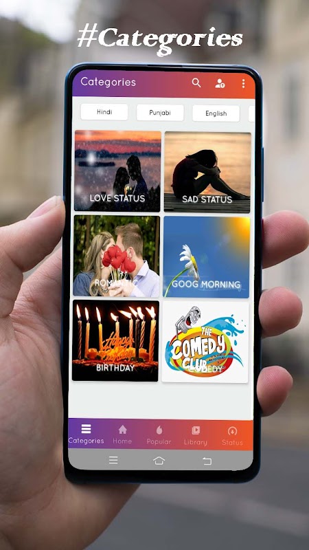 ❤️❤️❤️The app has 2 Section with Video status and Whatsapp status saver. all have sub-category like Funny, DP, Love, Sad, Cool, Friendship, Miss You, BreakUp, Shayari, Heart Touching, Hindi, English, Jokes, Inspirations, Festival, Good Morning, Good Night, Islamic, Attitude Quotes, Birthday in all 4 sections.