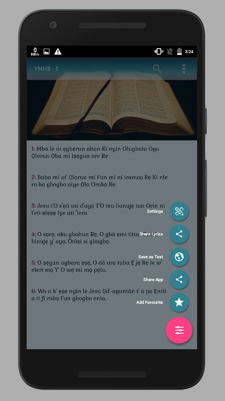 This application contains Yoruba bible and all the Methodist hymns(Yoruba version)