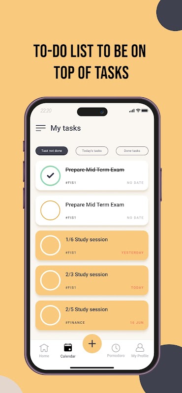 Jimat masa mengatur peperiksaan dan tarikh akhir dengan perancang kajian YourStep! Pelajar menetapkan hari dan jam bersedia untuk belajar dan perancang kalendar kami mengatur rancangan pembelajaran harian yang menyesuaikan diri dengan mood harian pelajar, kesukaran setiap mata pelajaran dan banyak pilihan belajar yang lain.