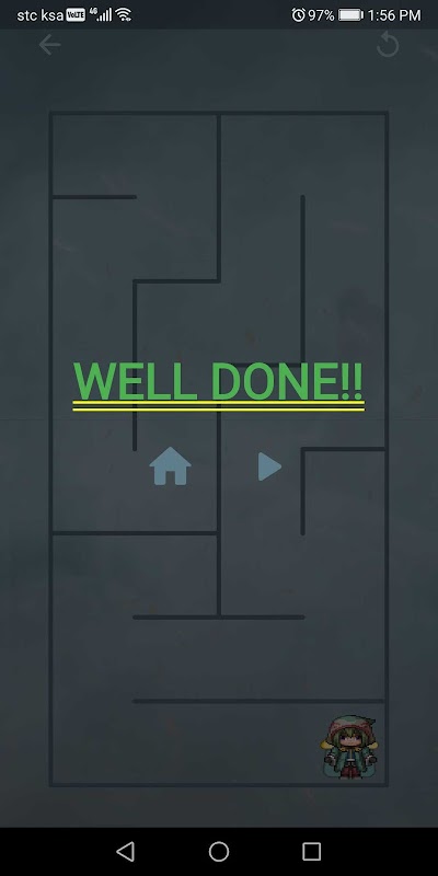 التطبيق يحتوي على ثلاث مستويات مختلفة من الاسهل للأصعب مع اختلاف المتاهات في كل مستوى.