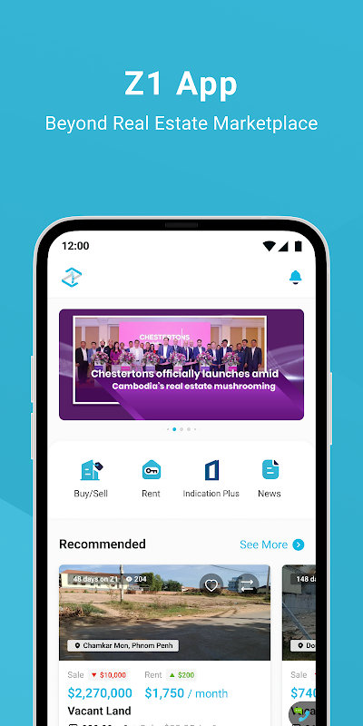 Aplikasi mudah alih Z1 Real Estate - penyelesaian pertama dan terkemuka Kemboja untuk platform harta tanah untuk perniagaan dan individu yang sesuai dengan keperluan anda dalam pembelian harta tanah, menjual, menyewa dan banyak lagi.