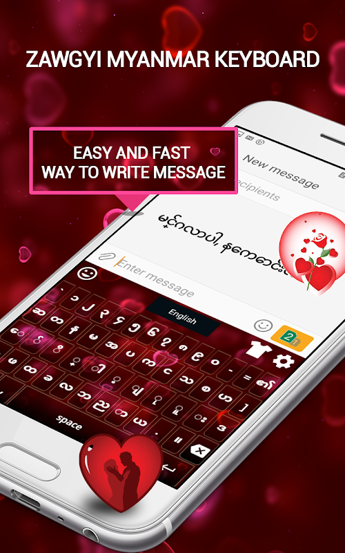 English to Zawgyi Myanmar keyboard is best app regarding Social media. You can Translate, Search, send mails, Write post, Blog and even share your status on Social media.