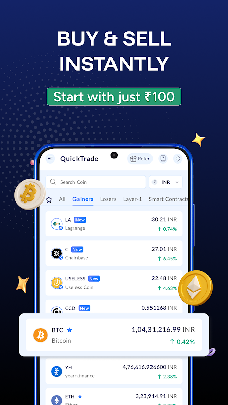 Melabur & berdagang kripto dan bitcoin dengan selamat dengan ZebPay - mudah, pantas dan dipercayai oleh berjuta-juta orang. Sama ada anda memulakan perjalanan anda atau seorang peniaga yang berpengalaman, aplikasi pelaburan Bitcoin semua-dalam-satu ini membantu anda membeli kripto, berdagang Bitcoin dan mengurus portfolio kripto anda dalam beberapa ketikan. Nikmati keselamatan gred industri, alatan intuitif dan akses kepada pelbagai aset kripto dengan apl perdagangan kripto yang boleh dipercayai dan dipercayai ini.