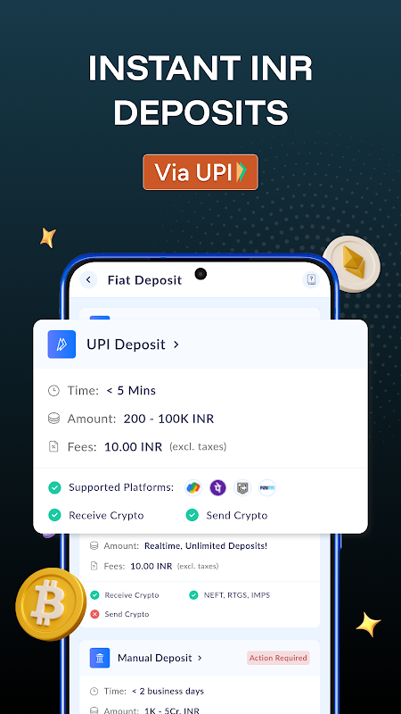 ● Deposit UPI Segera: Deposit dengan lancar sehingga ₹1,00,000 tanpa kelewatan sifar.